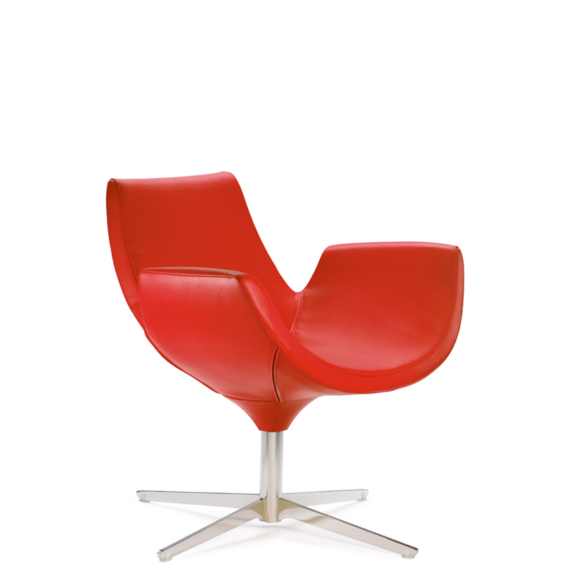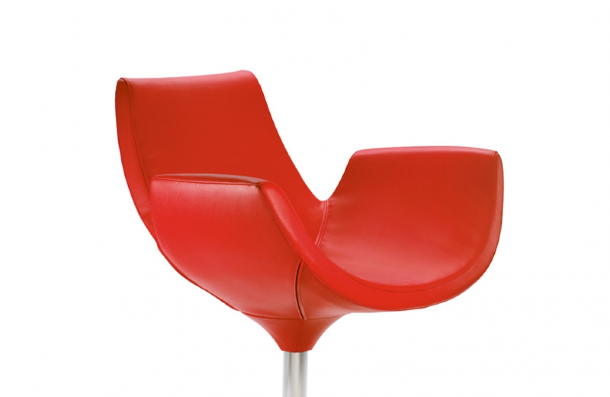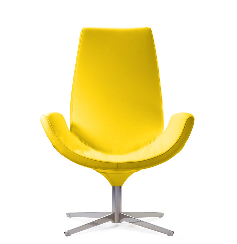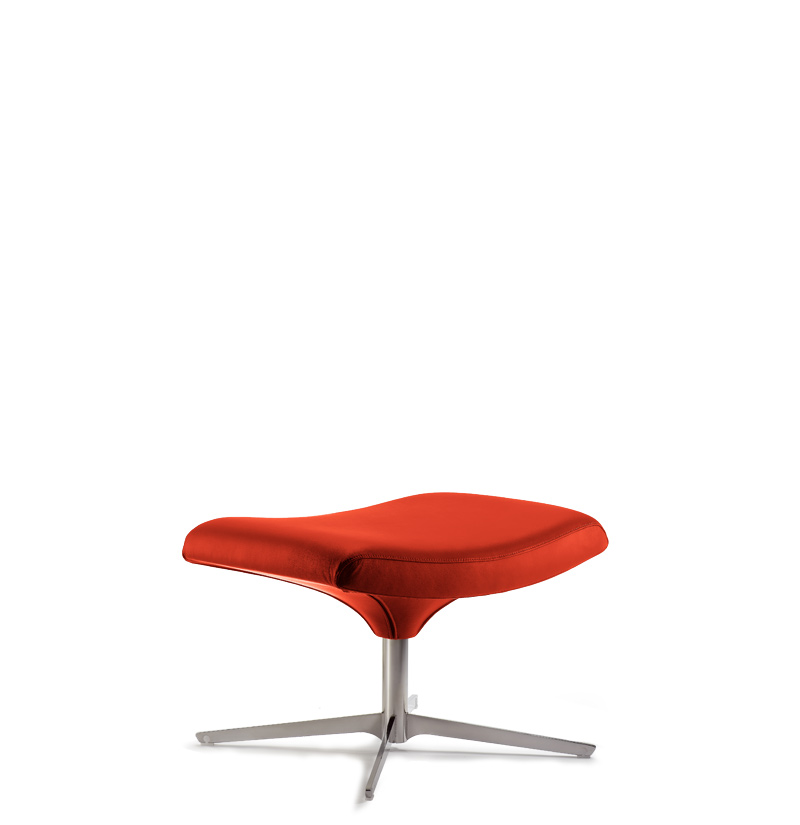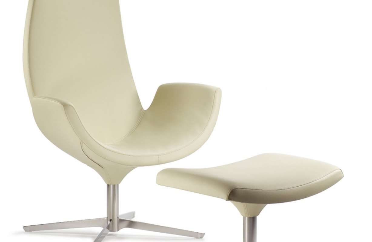 Cheer is a lounge seating line that is meant to inspire reception areas and contract areas. It is characterized by joyful and contemporary lines. It is the ideal solution for spaces where design, comfort and functionality merge. A chair with high and low backrest options and a matching ottoman. Cold-foamed polyurethane shell, upholstered in leather or fabric to your selection on a chromium-plated steel four-star base.