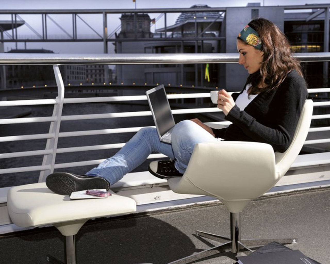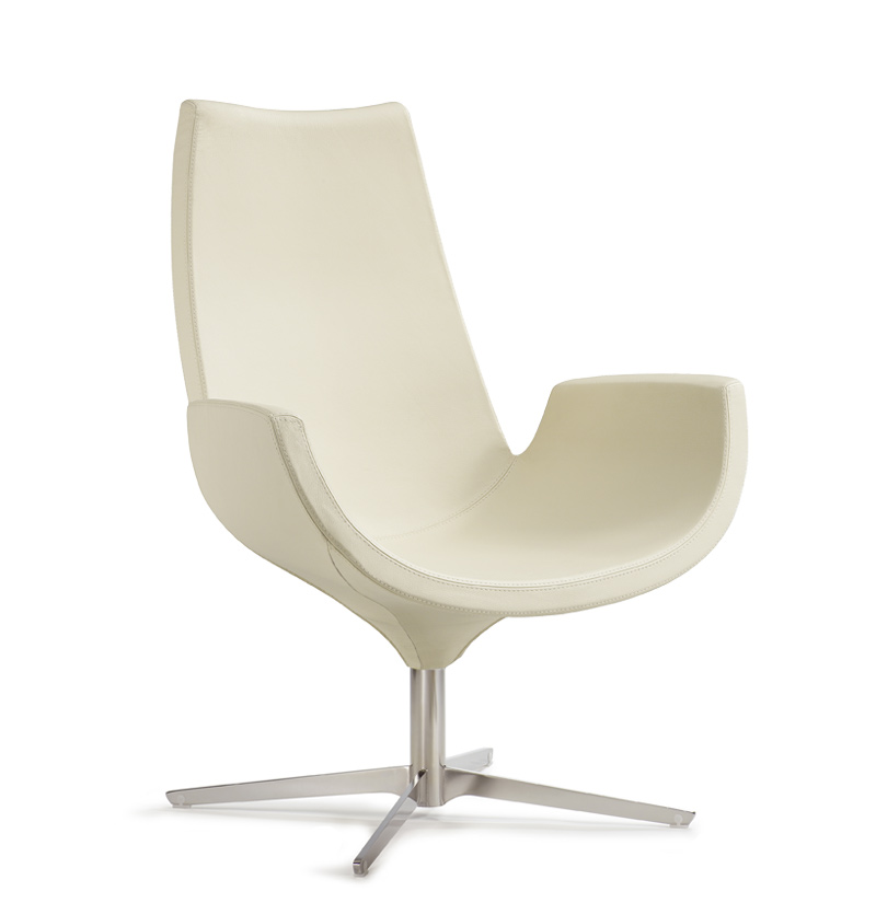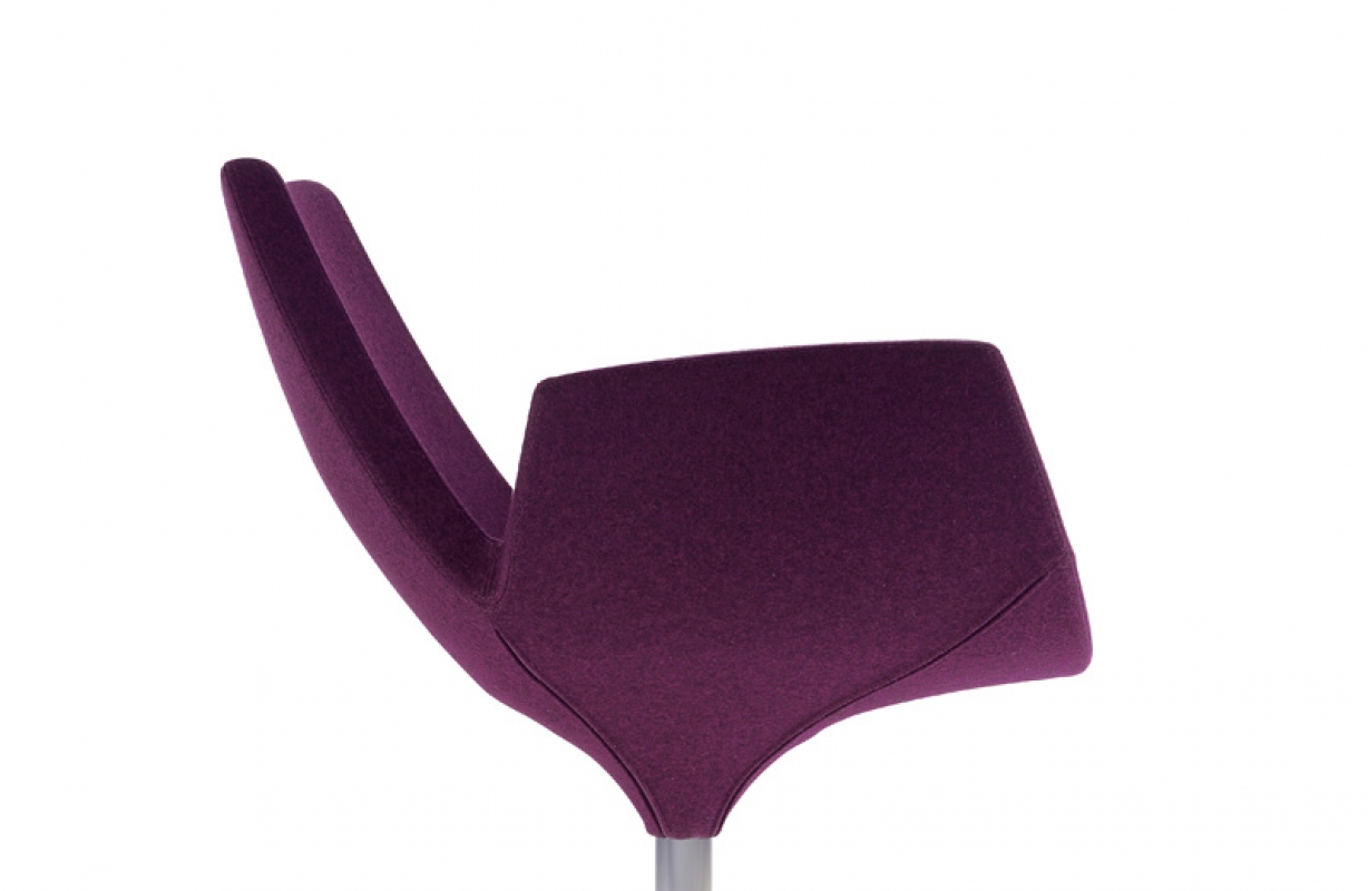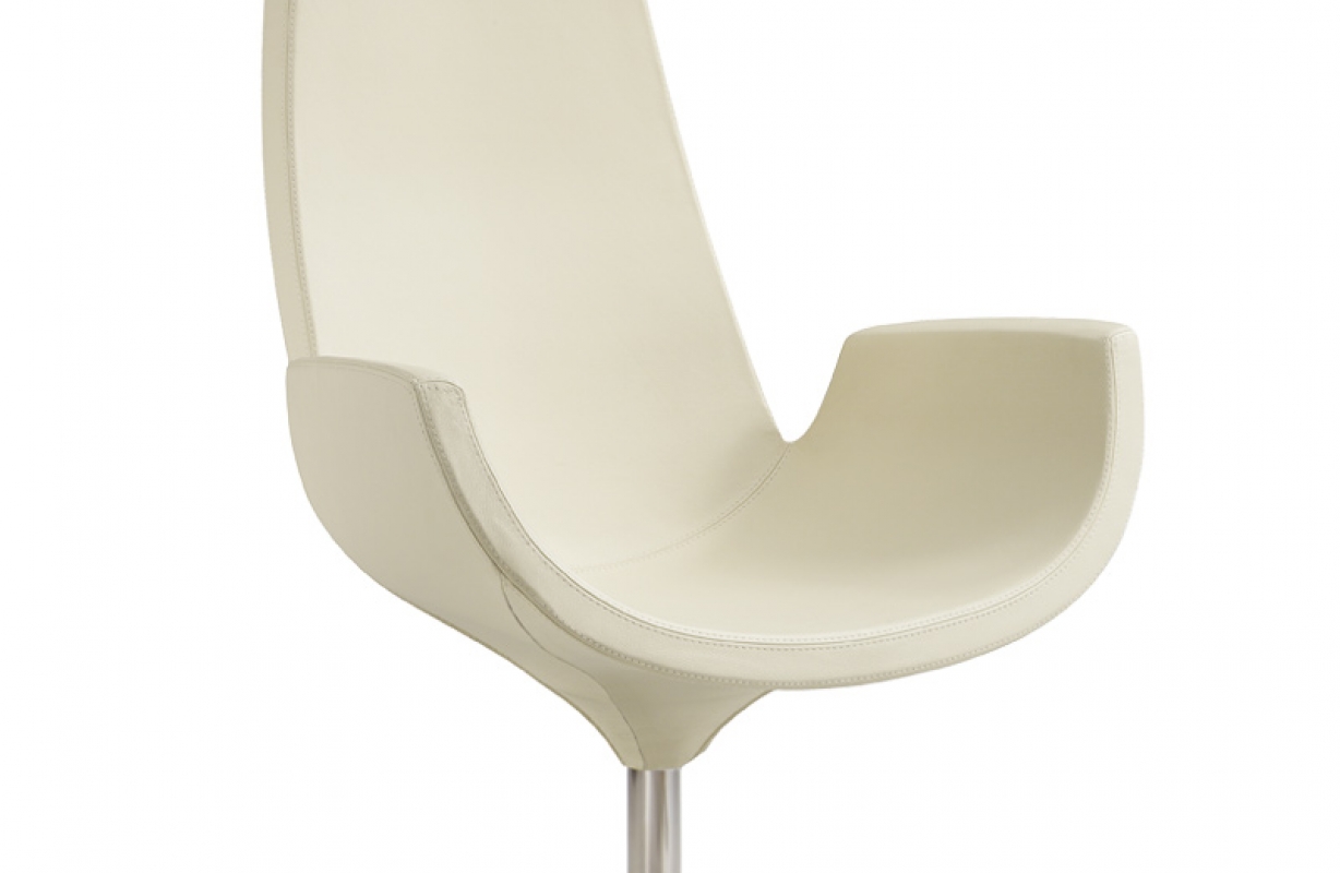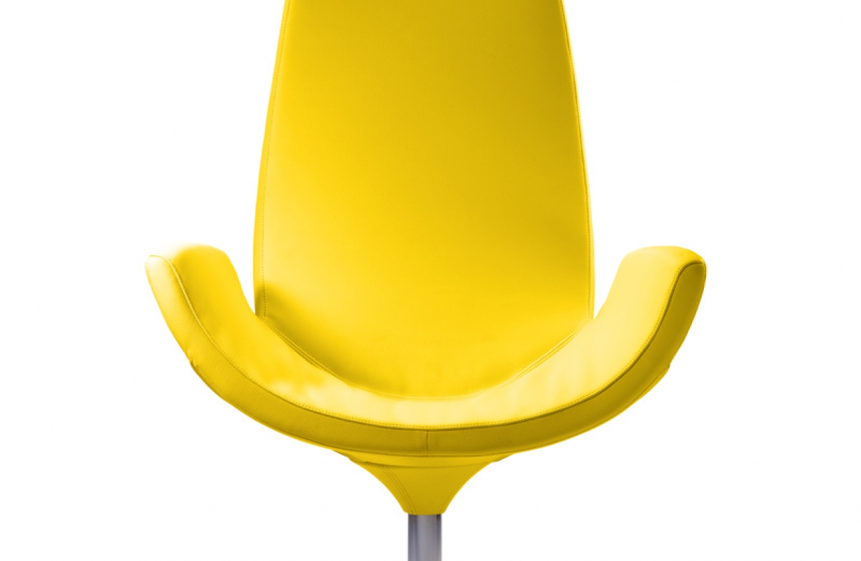 Cheer is a lounge seating line that is meant to inspire reception areas and contract areas. It is characterized by joyful and contemporary lines. It is the ideal solution for spaces where design, comfort and functionality merge. A chair with high and low backrest options and a matching ottoman. Cold-foamed polyurethane shell, upholstered in leather or fabric to your selection on a chromium-plated steel four-star base.