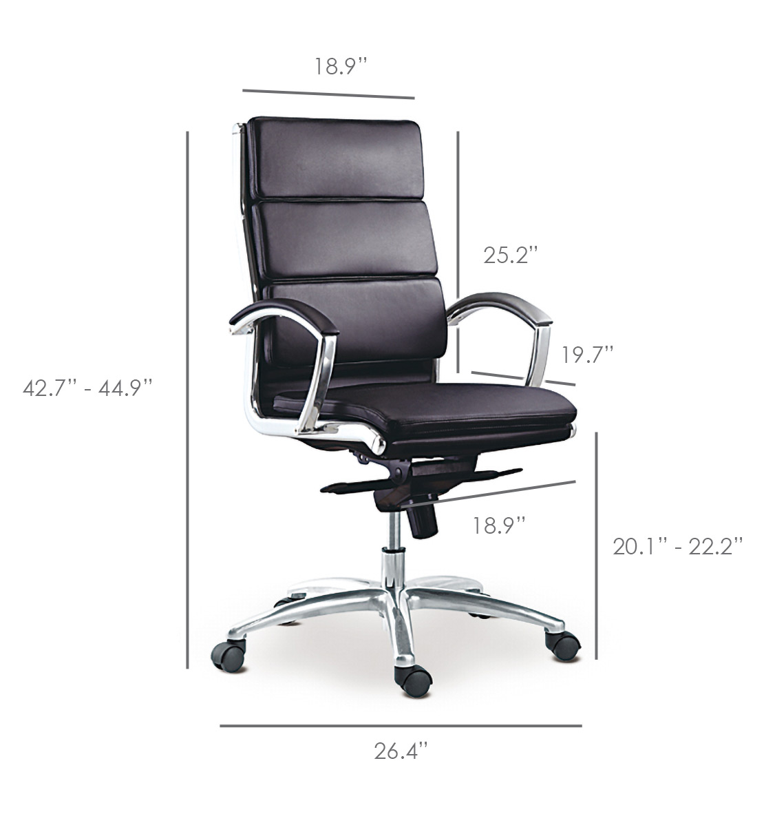 Chrome arms with upholstered armrest pads
